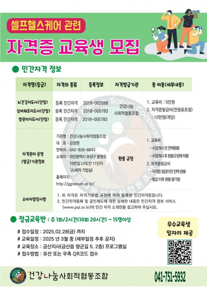 2025년 상반기 셀프헬스케어 관련 자격증 교육생 모집