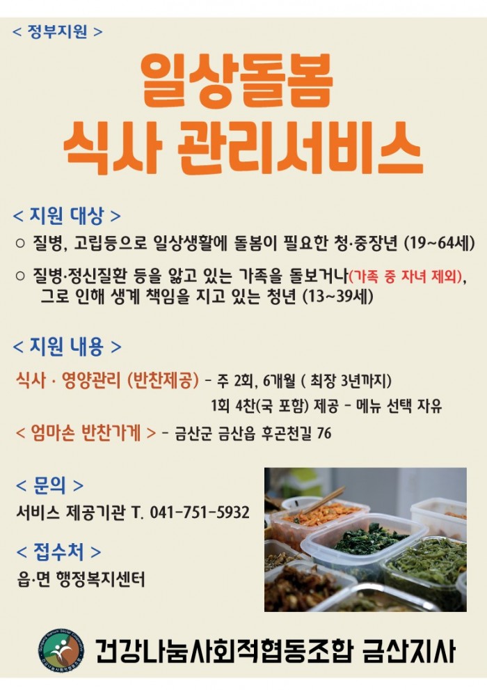 청중장년 식사관리(반찬제공) 서비스 개시