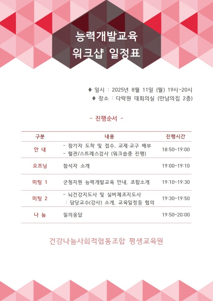 2025 금산군지원 능력개발교육 워크숍 일정표