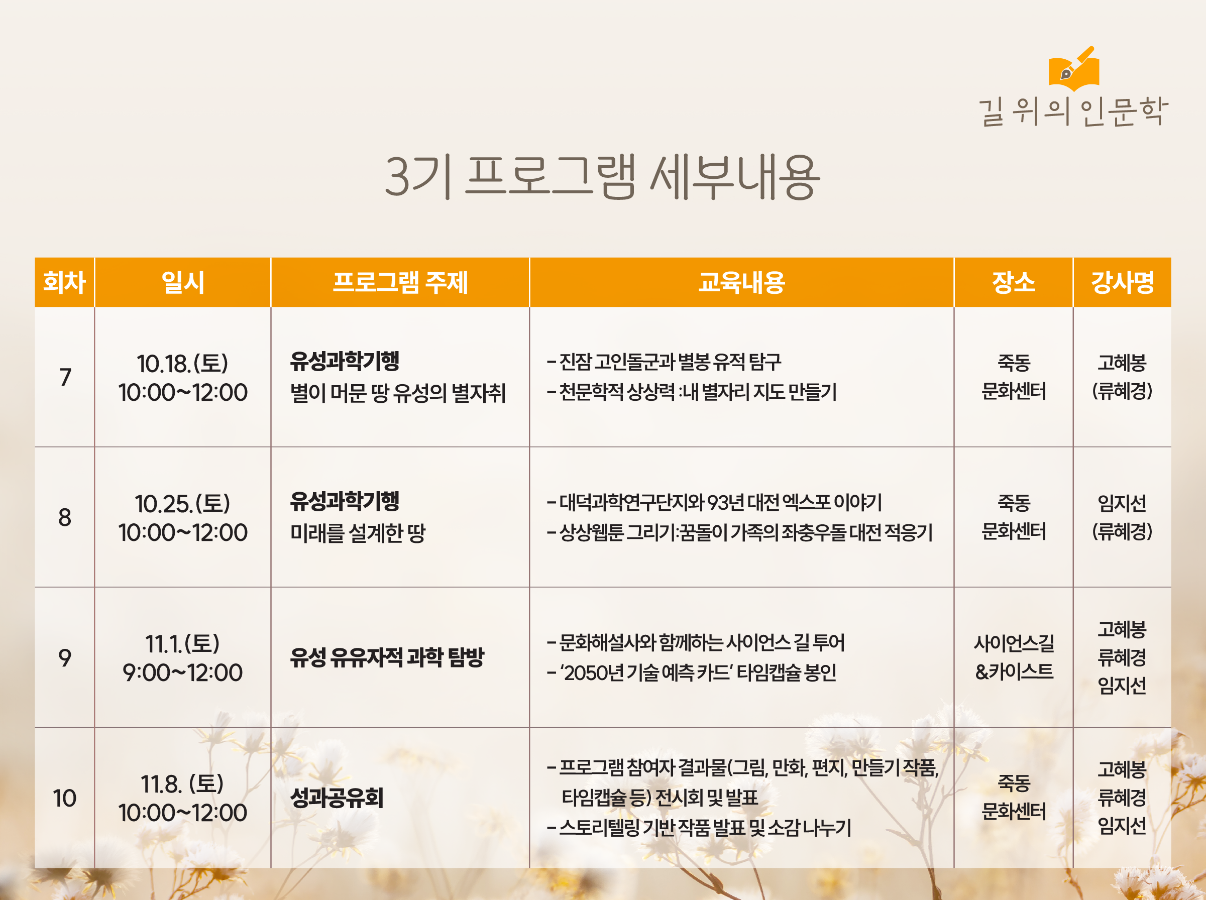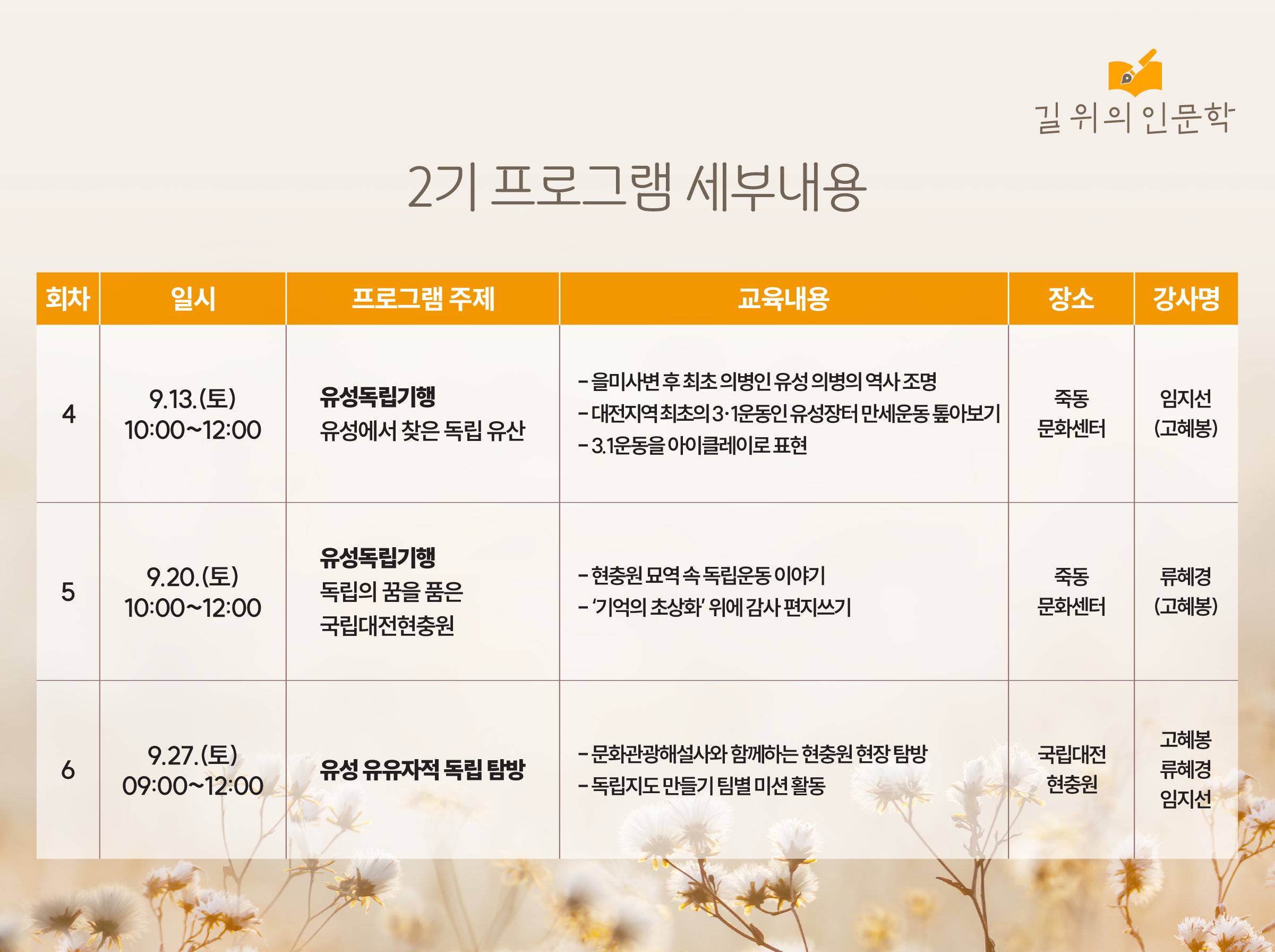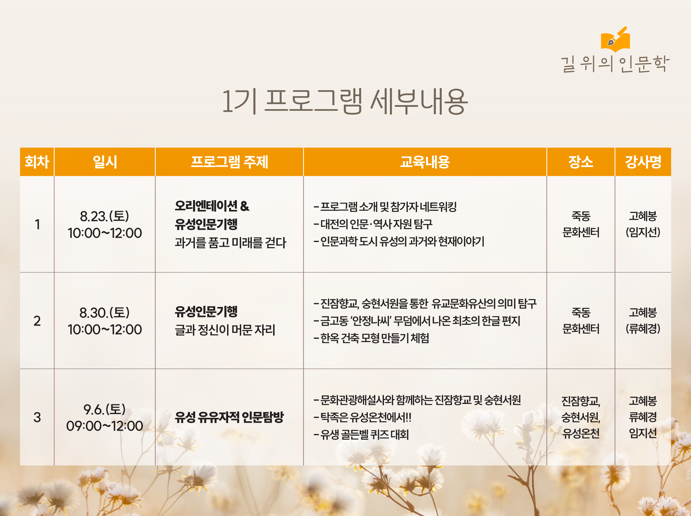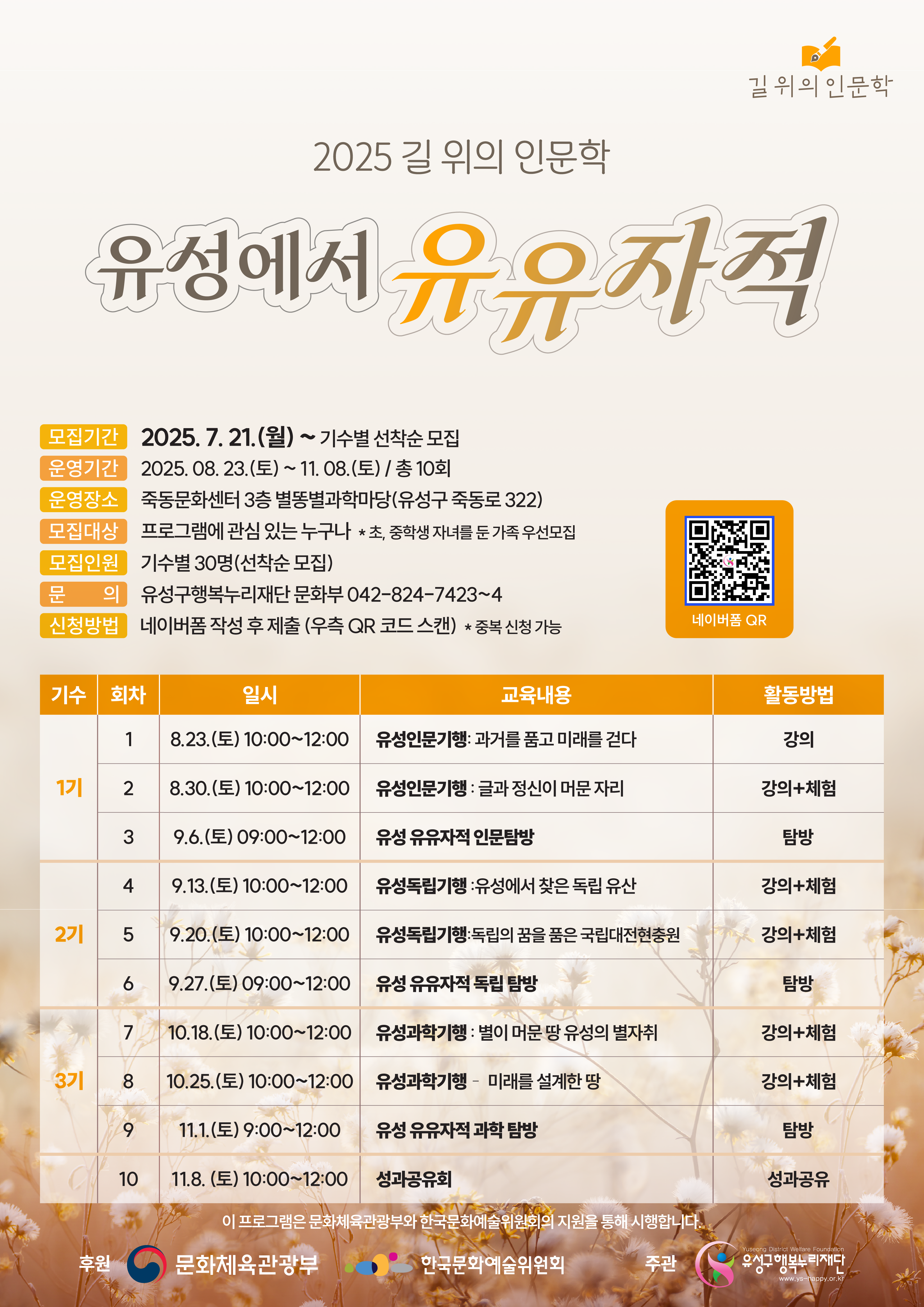 2025 길 위의 인문학 유성에서 유유자적 참가자 모집