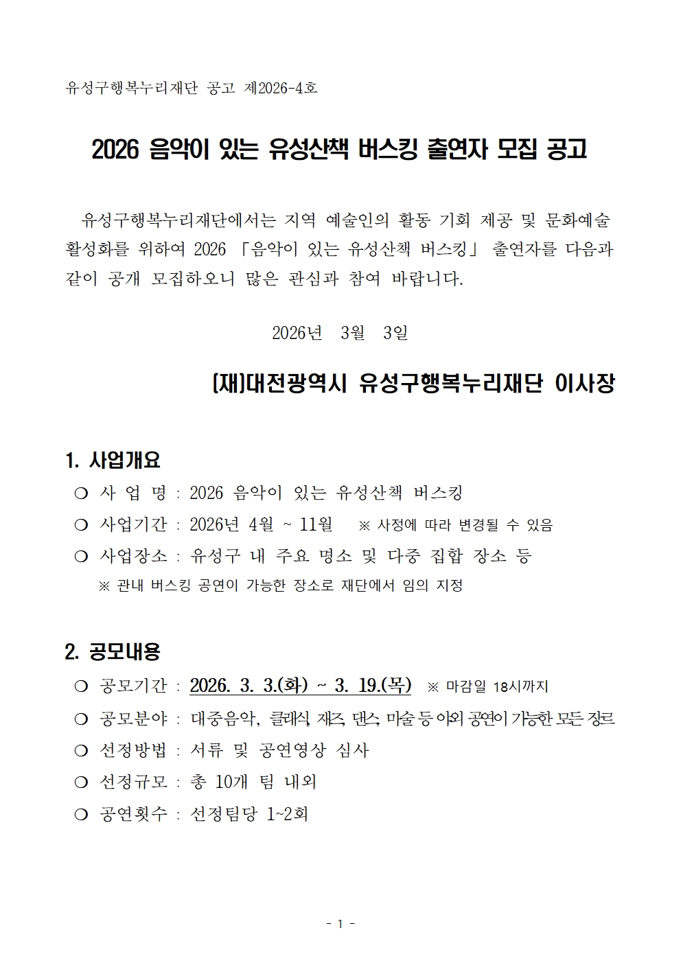 2026 음악이 있는 유성산책 버스킹 출연자 선정결과 공고
