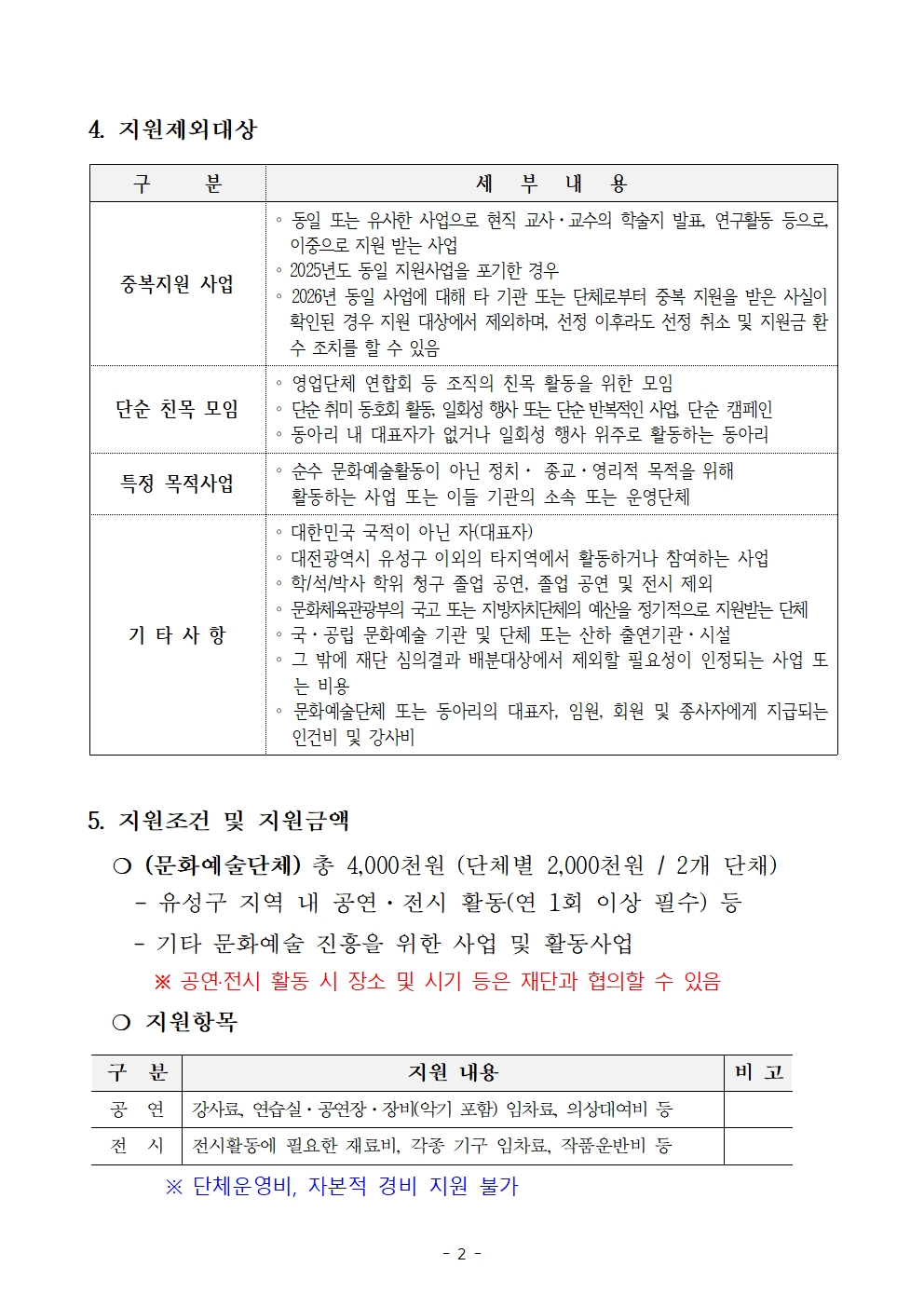 2026년 문화예술단체 지원사업 추가 모집 공고